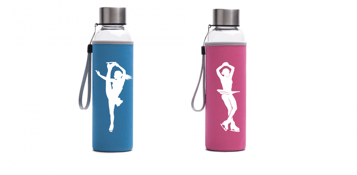 Vattenflaska med neoprenomslag – Konståkare (Rosa & Blå)